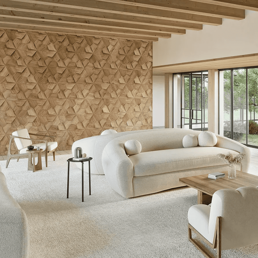 Each pattern of the Motif Collection is offered in a flat version for the floor or wall, and a dimensional version for the wall, designed for extraordinary and seamless textures to continue across surfaces.